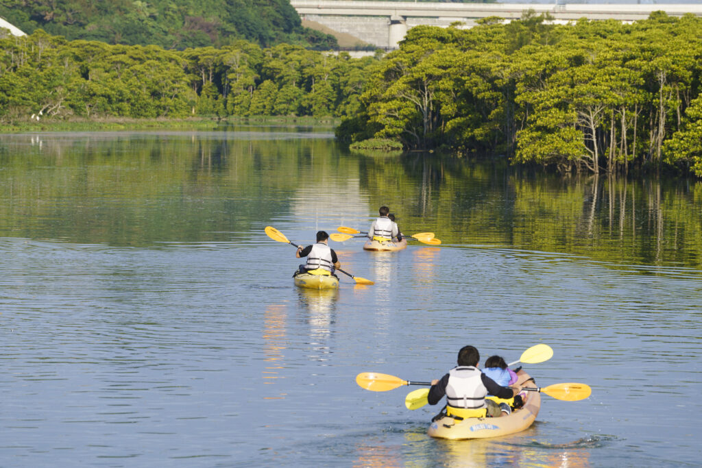 沖縄県のほぼ中央に位置する金武町(きんちょう)の億首川でマングローブ林をカヤックに乗って近くで観察できます。沖縄本島では珍しい4種類のヒルギを観察でき、地元金武町出身のインストラクターのレクチャーの元、二人一組でカヤックを漕ぎ手付かずな自然を満喫できます。個人、団体でもオススメです。地元に長年住む現地出身インストラクターだからこそのマル秘スポットや地元ならではの食べ物などを聞くのもおすすめです。
